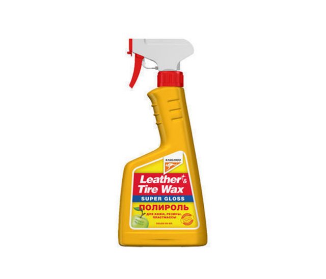 Полироль для кожи, резины, пластмассы Leather&Tire Wax Super Gloss Придает исключительный блеск изделиям из кожи, винила, резины и пластика. Восстанавливает их первоначальный цвет. Используется для обработки приборных панелей и других элементов салона автомобиля, неокрашенных бамперов, покрышек. Широко используется в быту для ухода за сумками, бумажниками, поясами, обувью. Имеет приятный аромат яблока. Способ применения: Очистите обрабатываемую поверхность от пыли и грязи. Равномерно распылите полироль на обрабатываемую поверхность с расстояния примерно 20 см. Можно наносить полироль с помощью прилагаемой губки или любой чистой тканевой салфетки, предварительно смочив их полиролью. Несильно разотрите полироль по поверхности губкой или тканевой салфеткой. Объем 500мл.